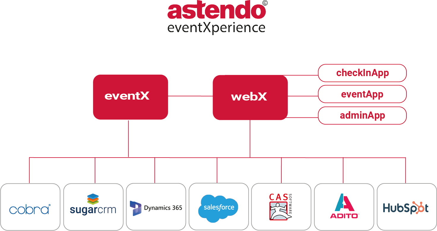 astendo eventXperience spricht die Sprache Ihrer Systeme – von Adito bis Salesforce.